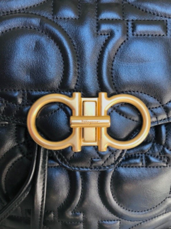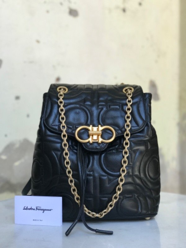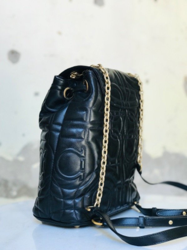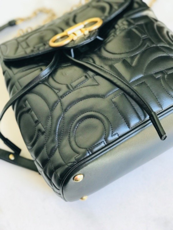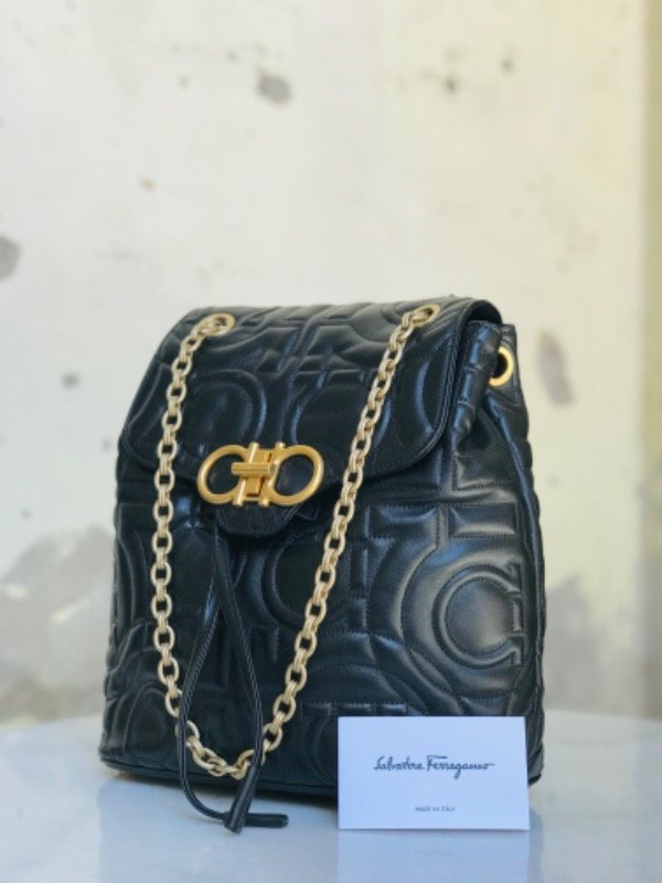 Salvatore Ferragamo backpack (mochila) en piel negra acolchada Gancini.